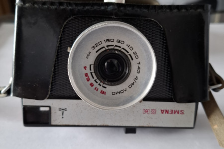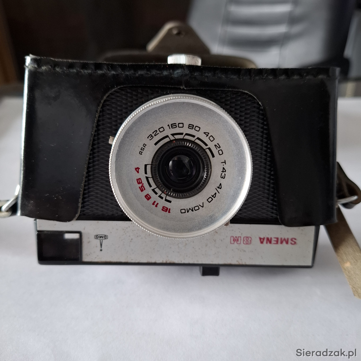 Aparat SMENA 8 M -OMO. Sprawny - praktycznie nie używany. W zestawie oryginalny czarny futerał z paskiem.,regulowanym., na ramię.