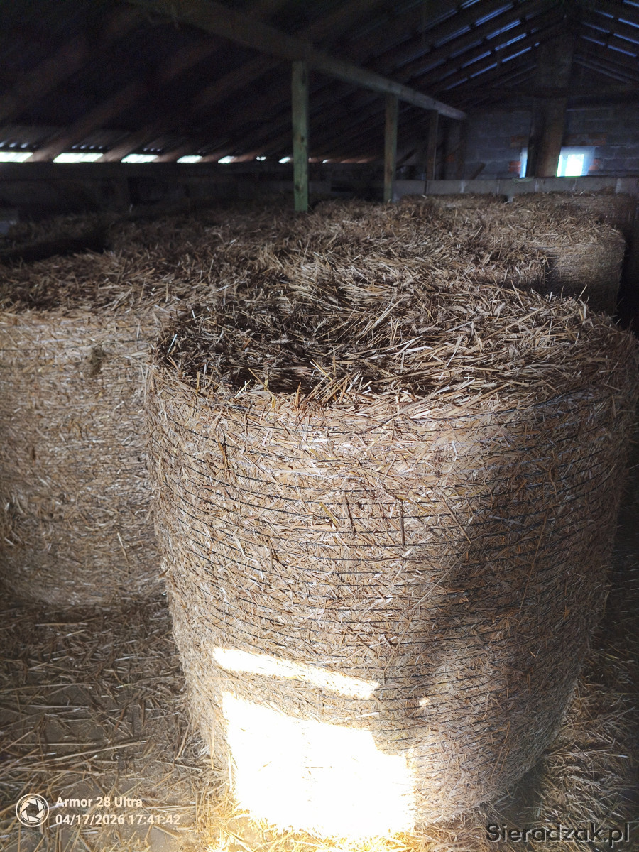 Witam serdecznie. Sprzedam słomę żytnią oraz owsianą, zebraną bez deszczu w sezonie żniwnym 2025. Słoma przechowywana pod dachem. Bele o średnicy 130-140 cm i wysokości 120 cm, dobrze zbite, po prasie pasowej, owinięte siatką. Przechowywane w pozycji pionowej, na jednej warstwie, dlatego zachowały pierwotny, równy kształt.