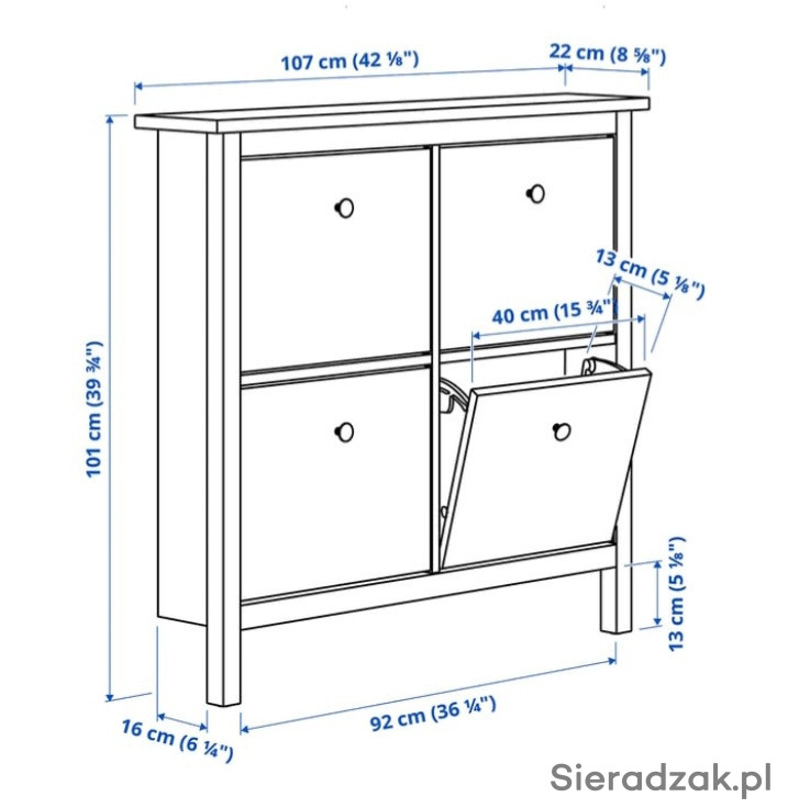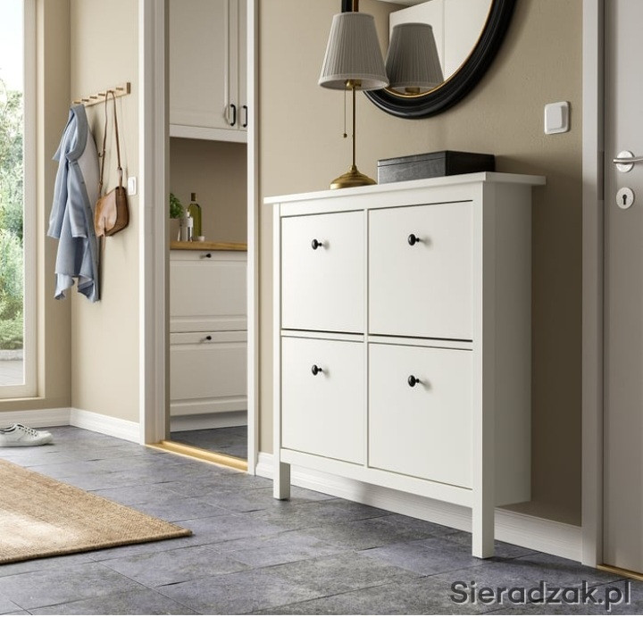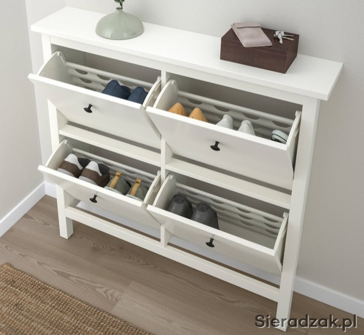 Nowoczesna biała szafka na buty z serii Hemnes marki Ikea. Posiada 4 szuflady na obuwie,ktore pomoga Ci utrzymać porządek w przedpokoju.