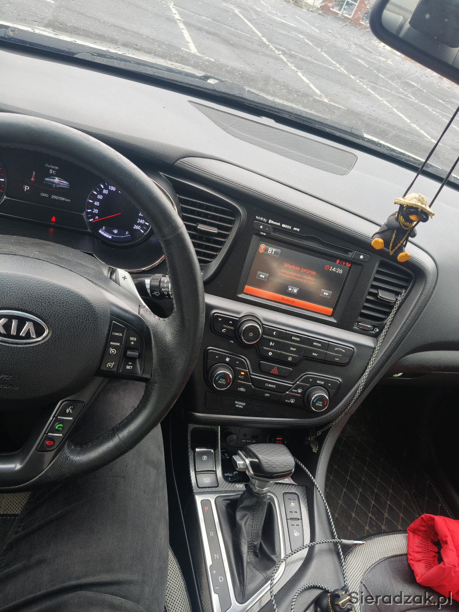 Kia jest dosyć dobrze wyposażona, grzane przednie fotele i wentylowany kierowcy, elektryczny fotel kierowcy z pamięcią, automatycznie parkowanie równoległe (auto rzeczywiście samo parkuje, używam tego bardzo często, jest to niezawodny system) automatyczne światła i wycieraczki, doświetlanie zakrętów, kamera cofania, czujniki parkowania przód i tył, nagłośnienie JBL Infiniti z fabrycznym subwooferem (jest to niewątpliwie największy atut samochodu, głębia basu zauroczy każdego) automatyczna skrzynia biegów z łopatkami przy kierownicy, tempomat, system łączności Bluetooth z trybem rozmów głośnomówiących, system ostrzegający o skręceniu kół po odpaleniu silnika, lusterko fotochromatyczne z automatycznym sciemnianiem i pewnie o czymś zapomniałem