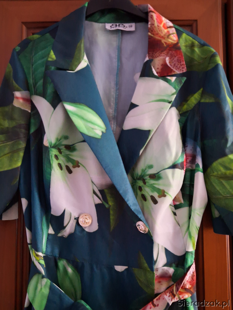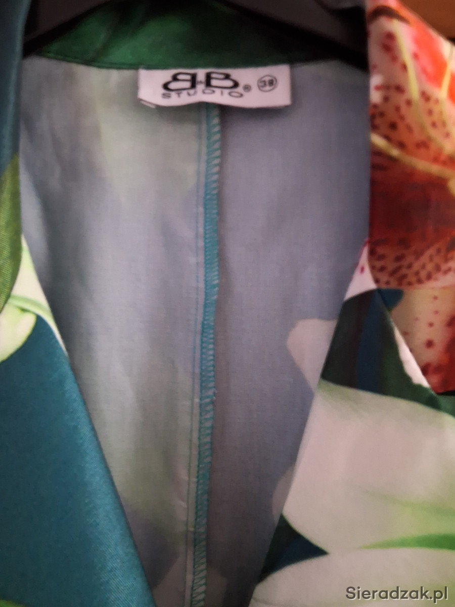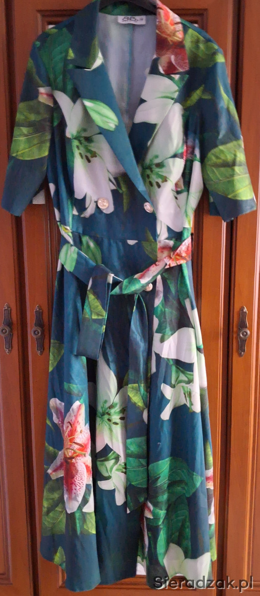 Sprzedam piekna sukienke polskiej marki BB STUDIO w rozmiarze 38.Sukienka zapinana na ozdobne guziki,ktore nadaja szyku i elegancji.gora dopasowana,dol rozkloszowany.material wysokiej jakosci.posiada pasek.zapraszam.