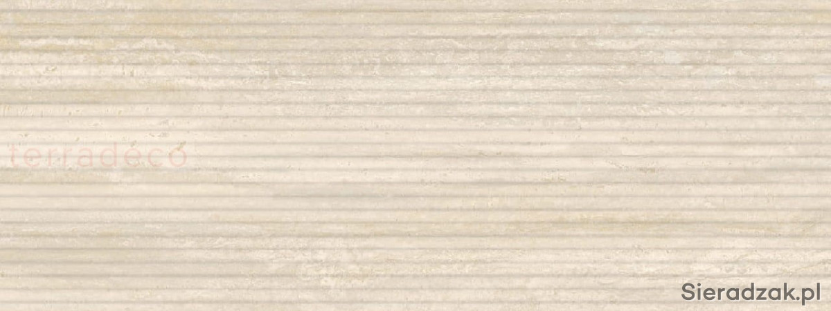Płytki ścienne trawertynowe w kolorze beżowym, matowe, strukturalna powierzchnia Porcelanosa Canal Roma Marfil 45x120.