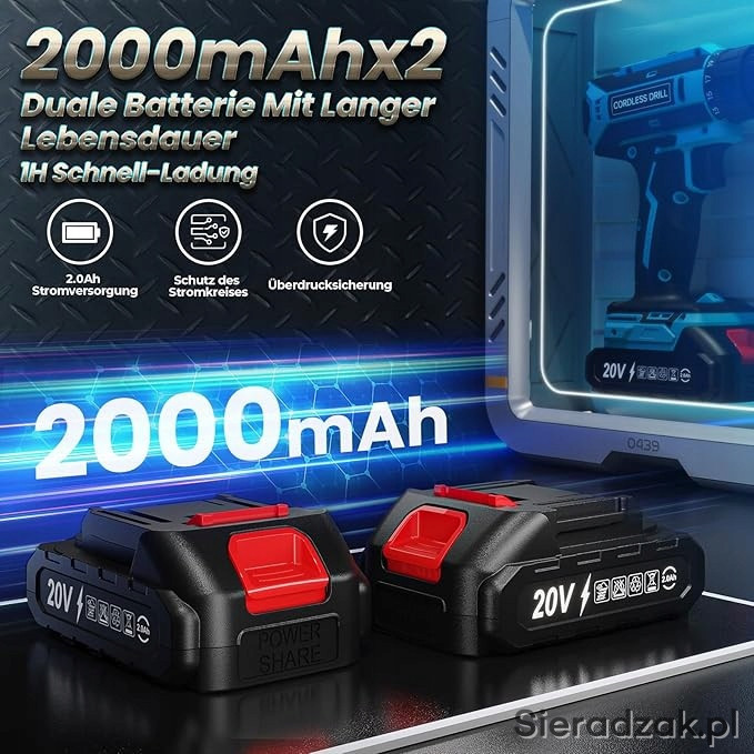 Wiertarko-wkrętarka akumulatorowa FAHEFANA z 2 akumulatorami 2000 mAh 20V