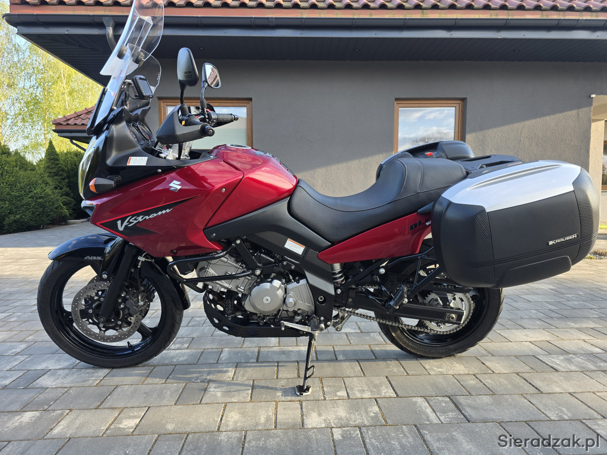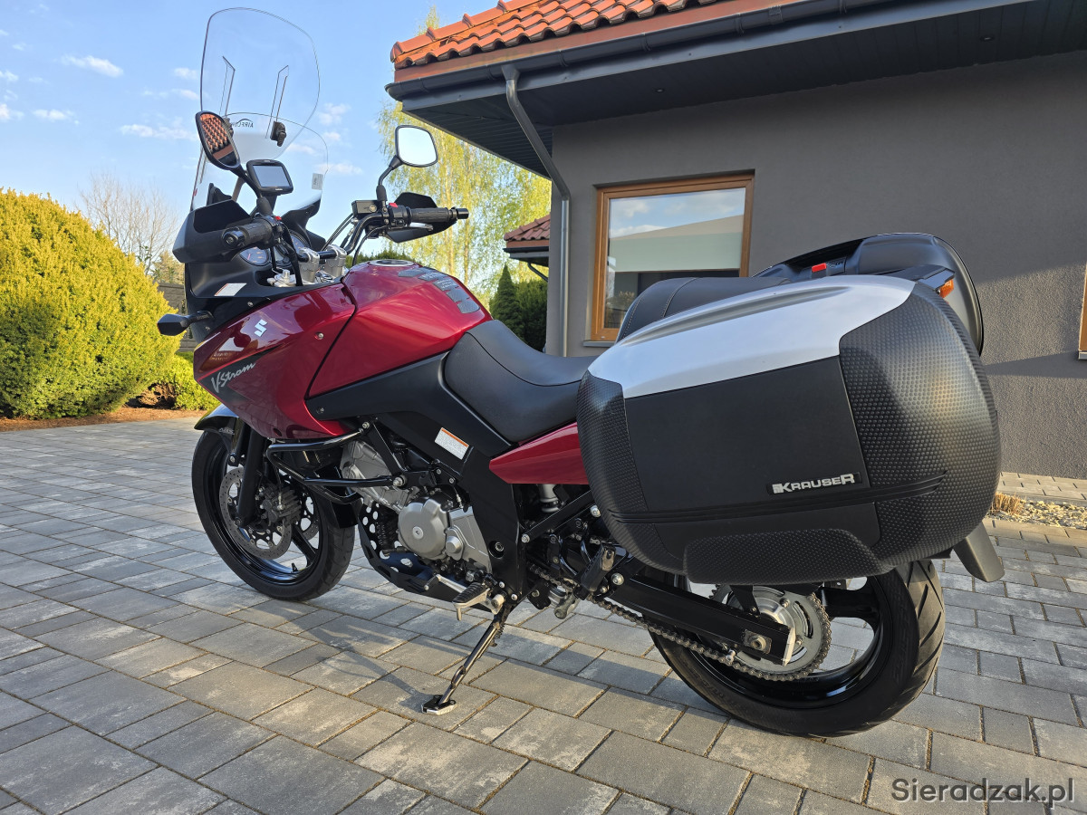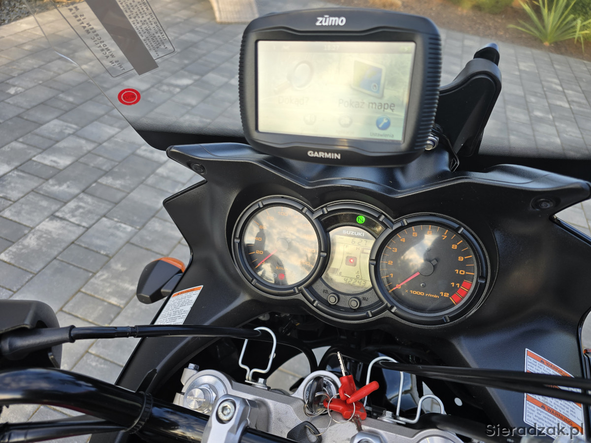 Motocykl bardzo zadbany. Lakier w pieknym stanie. Mechanicznie wszystko działa bez zarzutu. Silnik odpala bez problemu zimny i ciepły. Nie dymi. Bardzo ładnie wkreca się na obroty. Opony, napęd i hamulce w bardzo dobrym stanie. Motocykl jest świeżo po dużym serwisie. Zrobiona została regulacja luzów zaworowych, wymieniony płyn chłodniczy, olej wraz z filtrem, płyn hamulcowy przód i tył, założone nowe świece zapłonowe, nowy filtr powietrza oraz wymieniona uszczelka pokrywy sprzęgła. Suzuki posiada bardzo dużo dodatków m.in kufry boczne Krauser, stelaż pod kufry Krauser, nawigacja Garmin, szyba Givi, gmole, płytę pod silnik, osłonę chłodnicy, poszerzenie stopki bocznej SW-MOTECH oraz akcesoryjną kanapę. Do motocykla posiadam również oryginalną kanapę oraz szybę Puiga z deflektorem. Motocykl nie wymaga absolutnie żadnego wkładu finansowego. Wsiadasz i jeździsz. Posiadam równiez zdjęcia z odbioru motocykla w Niemczech. Wystawiam fakturę. Kupujący zwolniony z opłaty skarbowej.