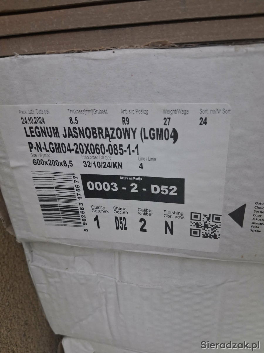 Sprzedam gres legnum jasobrązowy 20x60cm. Zostało mi 5.28mkw. Cena katalogowa 66za MKW. Odsprzedaje za 150 za calość.