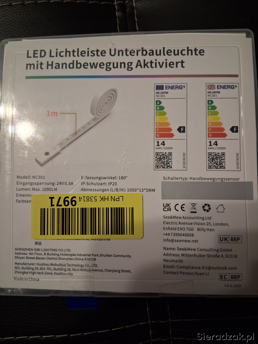 Nowoczesna listwa LED podszafkowa z czujnikiem ruchu oraz regulacją barwy światła.