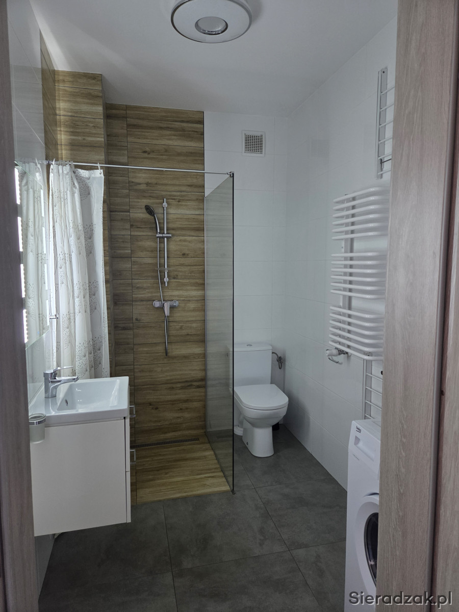 Witam. Mam do wynajęcia mieszkanie,w bloku z windą na 2 piętrze na ul. Reymonta w Sieradzu.Mieszkanie 33,6m2,składa się z salonu z aneksem kuchennym,sypialni,łazienki,korytarza.Mieszkanie w pełni umeblowane.Meble kuchenne wyposażone w sprzęt AGD;lodówka,piekarnik,mikrofala,zmywarka,płyta indukcyjna.W salonie rozkładana rogówka,telewizor.W korytarzu przestronna szafa.W łazience znajduje się prysznic oraz pralka.Sypialnia wyposażona jest w duże łóżko z materacem,szafke nocną oraz komodę.Do mieszkania przynależy piwnica,oraz prywatne miejsce parkingowe na ogrodzonym terenie.Umowa najmu okazjonalnego na okres minimum rok.Mieszkanie dostępne od 01.05.2026r.odstępne 1800zł + czynsz około 350zł(z zaliczkami za wodę i ogrzewanie)+prąd według zużycia.Kaucja zwrotna 2000zł.Zapraszam chętne osoby, ale bez zwierząt. Oferta tylko dla Polaków,obcokrajowcom dziękujemy.tel.692120660 lub 698303800.