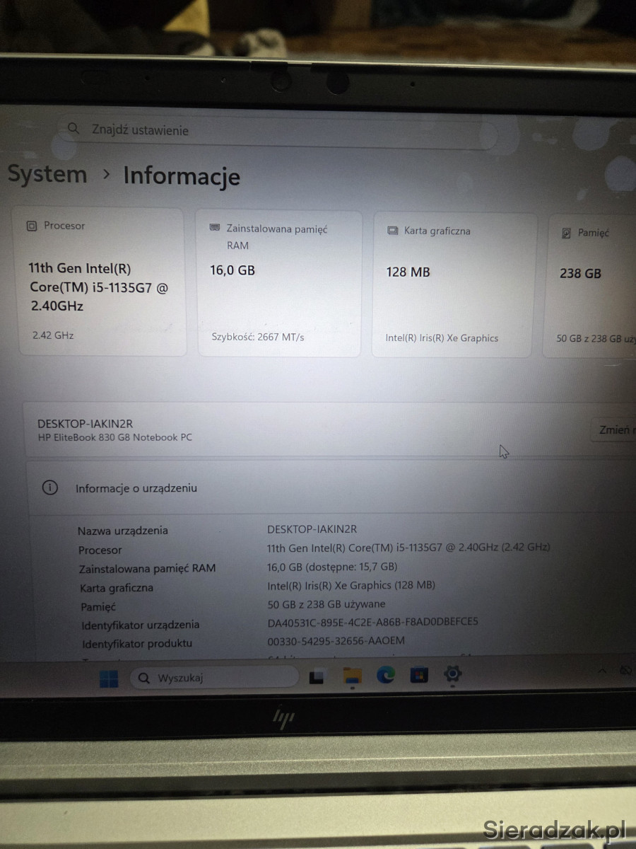 Na sprzedaż wykonany z aluminium laptop HP Elitebook 830 G8, jest to szybki sprzęt ponieważ posiada procesor i5-11 generacji, 16GB Ram DDR4 oraz 256GB dysk SSD M2 Nvme (jest możliwość dołożenia u mnie pamięci ram do 32gb jak i wymiana dysku na 512gb bądź 1tb).