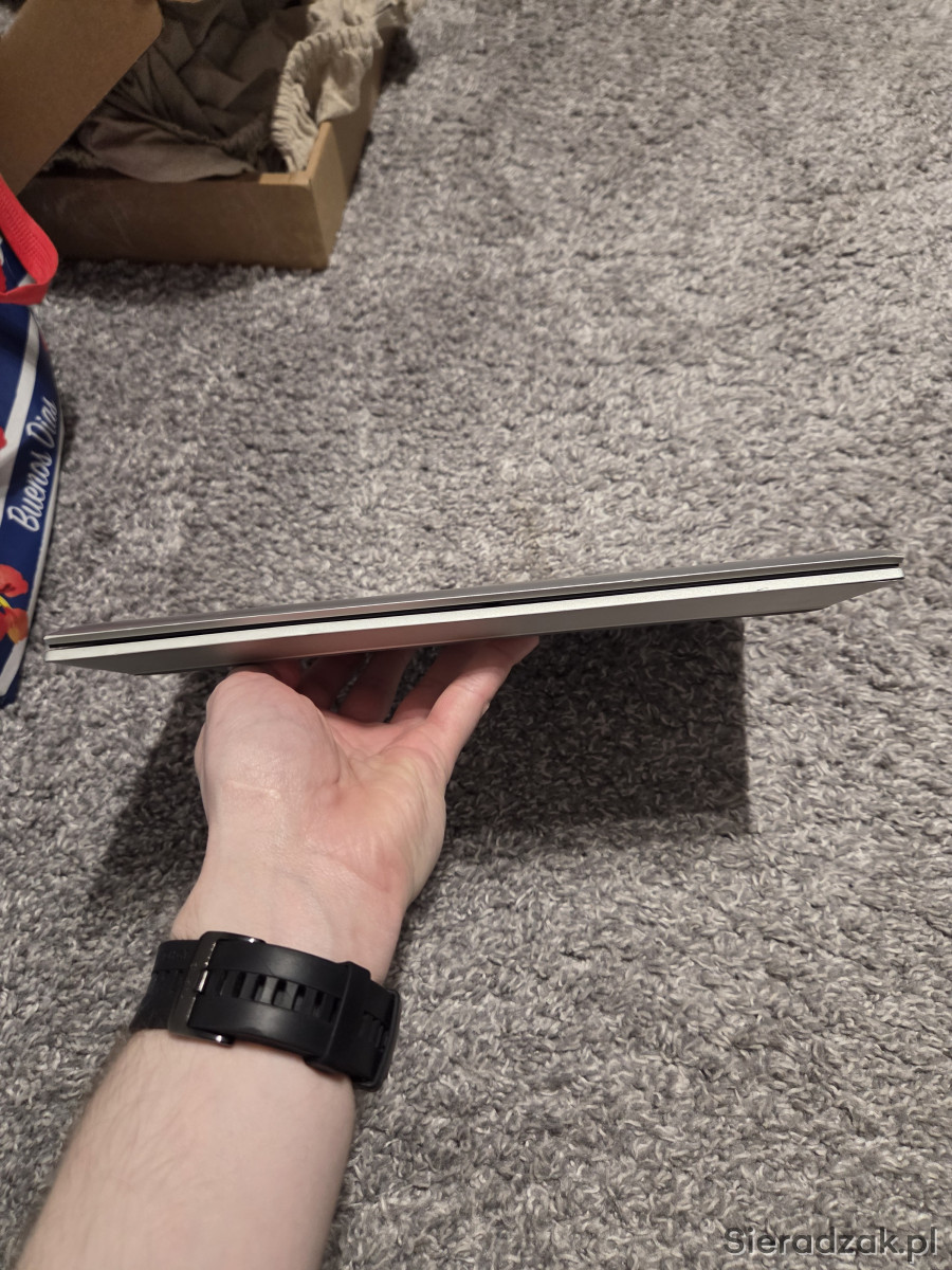 Posiada ekran o wielkości 13 cali Fullhd z przejasnieniami w górnej części widoczne na jasnym tle, na zdjęciu drugim aparat to trochę wyolbrzymił, na zdjęciu trzecim widać to mniej więcej jak w rzeczywistości, stąd o wiele niższa cena jak za ten model w tej konfiguracji. Sprzęt jest w pełni sprawny technicznie, jest używany, starałem się pokazać jego stan zewnętrzny na zdjęciach.