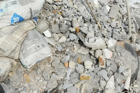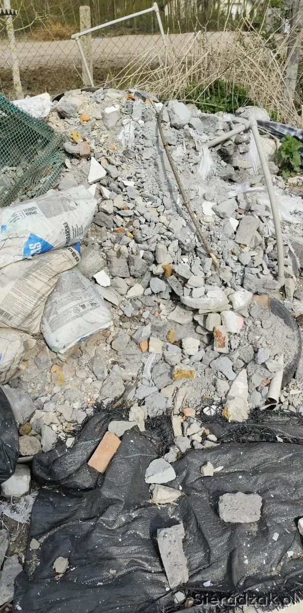 Oddam za darmo gruz budowlany widoczny na zdjęciu. W skład wchodzą kawałki betonu, cegieł oraz resztki materiałów budowlanych. Idealne do utwardzenia terenu, zasypki lub podbudowy.