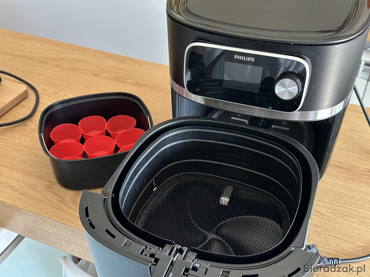 Frytkownica beztłuszczowa PHILIPS Ovi Smart 2.0 XXL używana. Stan praktycznie idealny, dodaje do zestawu misę do wypieków cena nowej 200 zł.
