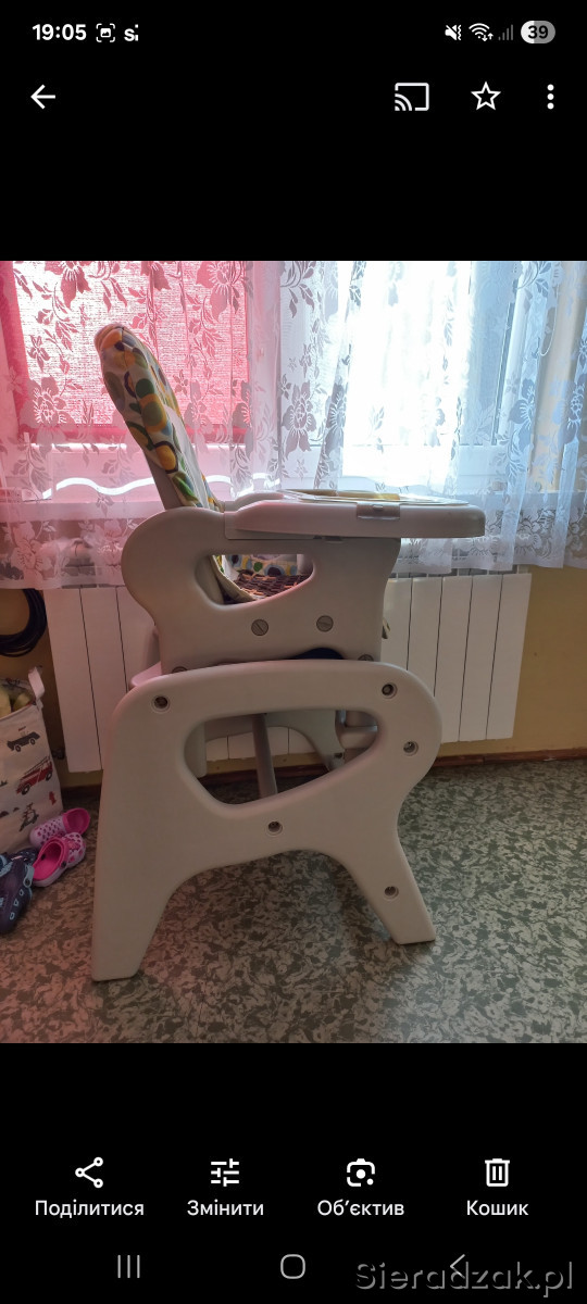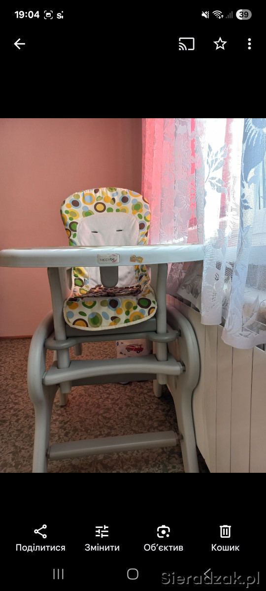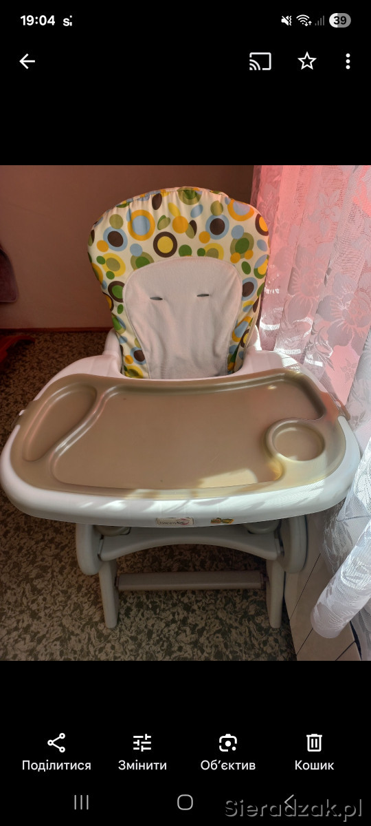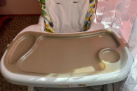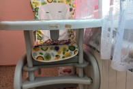 Fotelik do karmienia w dobrym stanie. Może służyć jako krzesełko i stolik dla dziecka po rozkładaniu.