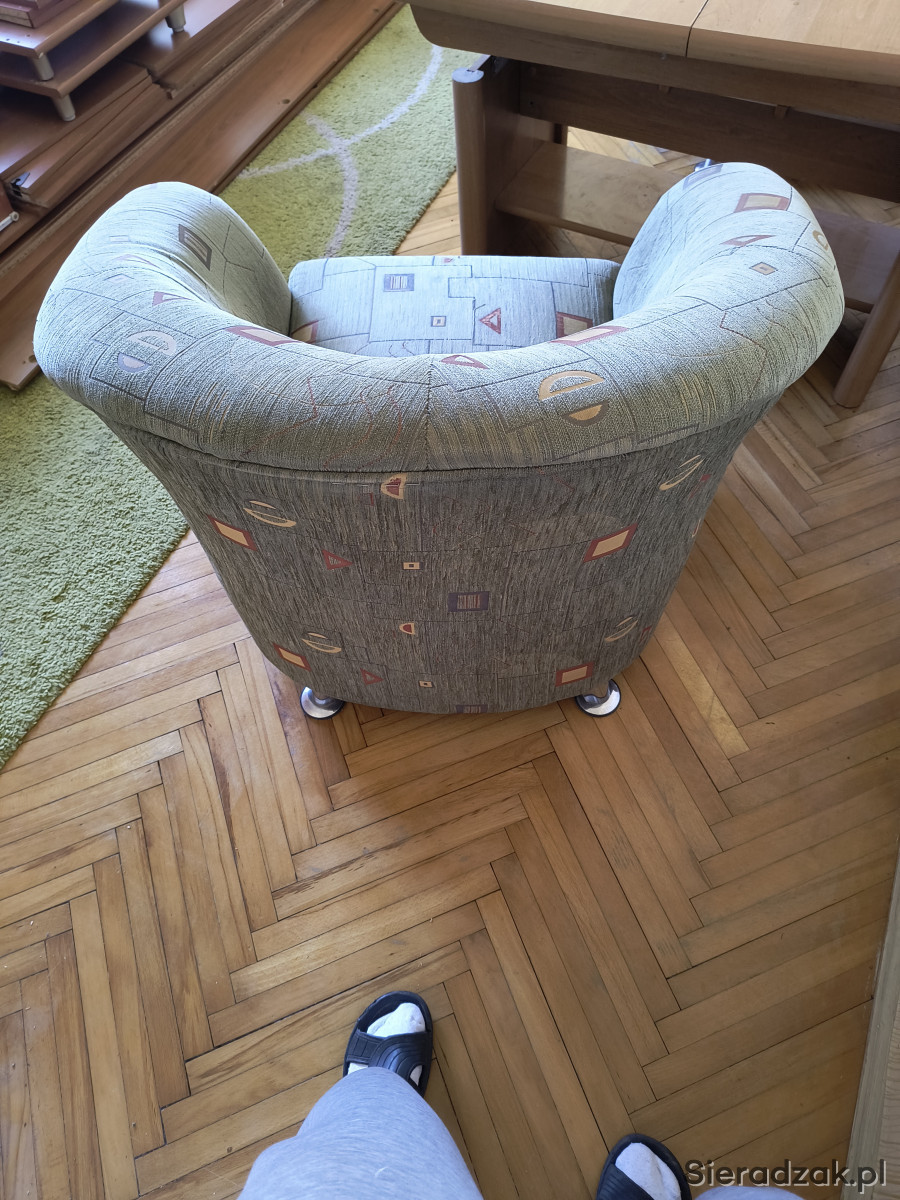 Na zdjęciu z ławą rozkładaną, którą oddam za darmo, jeżeli osoba zainteresowana fotelami będzie sobie życzyła i jeżeli wcześniej, ktoś inny się na nią nie skusi.