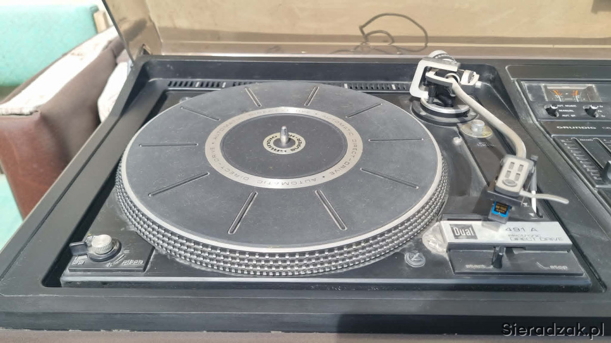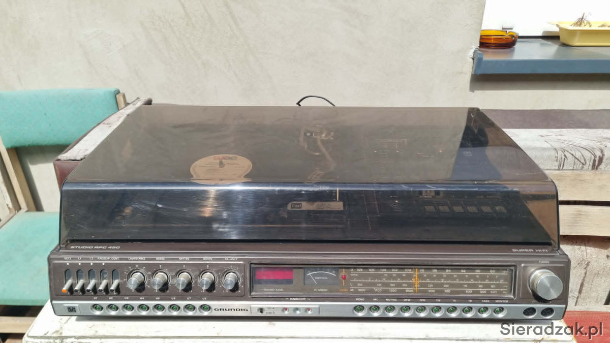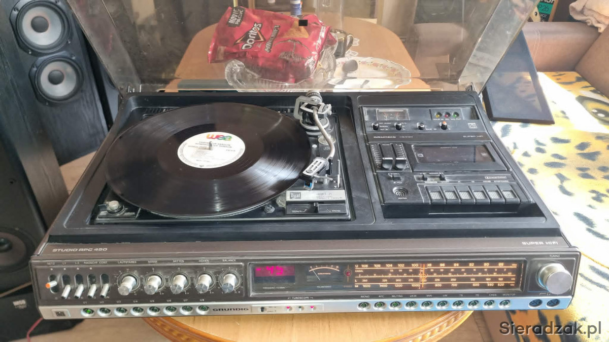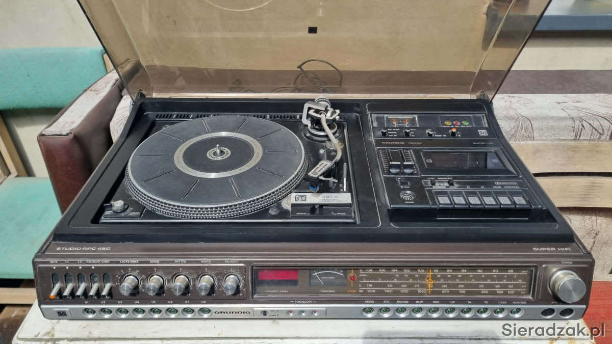 GRUNDIG RPC 450a z Dual CS-491A Direct Drive Ortofon M15E Super kolumny Grundig Box M600 centrum muzyczne z kolumnami. W stanie jak na foto. Gra ale wymaga przeczyszczenia potencjometrów z racji wieku i paski do wymiany w magnetofonie. W komplecie super kolumny Grundig Box M600.