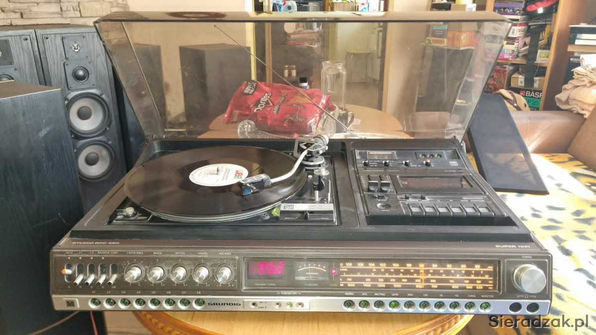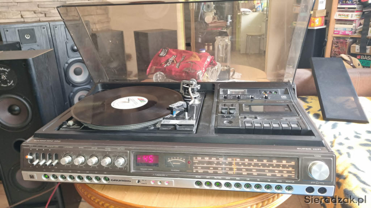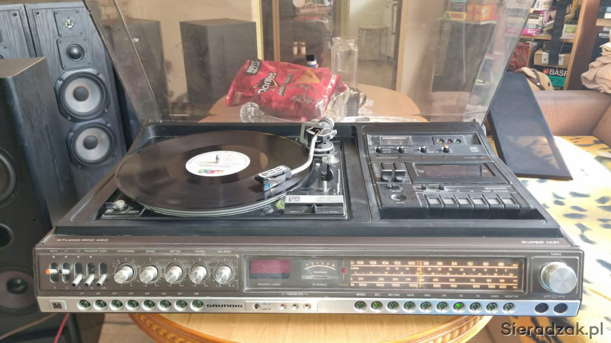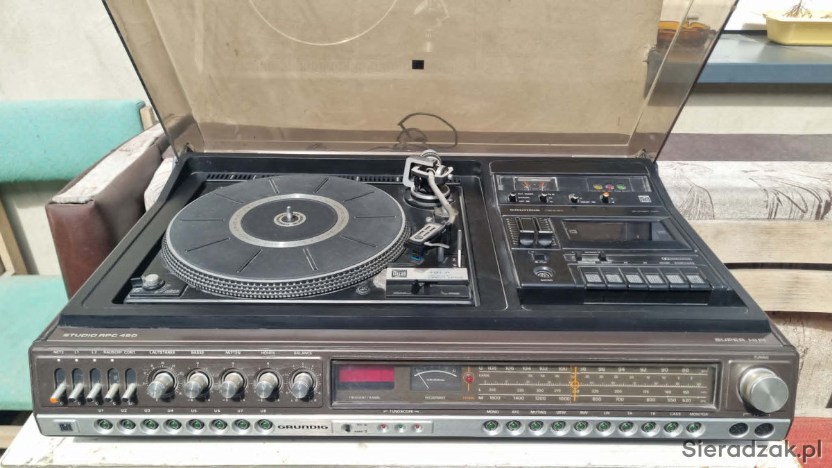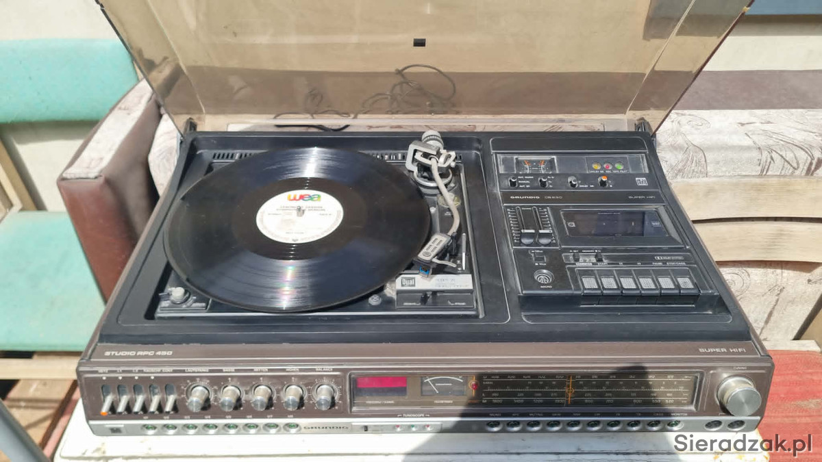 GRUNDIG RPC 450a z Dual CS-491A Direct Drive Ortofon M15E Super kolumny Grundig Box M600 centrum muzyczne z kolumnami. W stanie jak na foto. Gra ale wymaga przeczyszczenia potencjometrów z racji wieku i paski do wymiany w magnetofonie. W komplecie super kolumny Grundig Box M600.